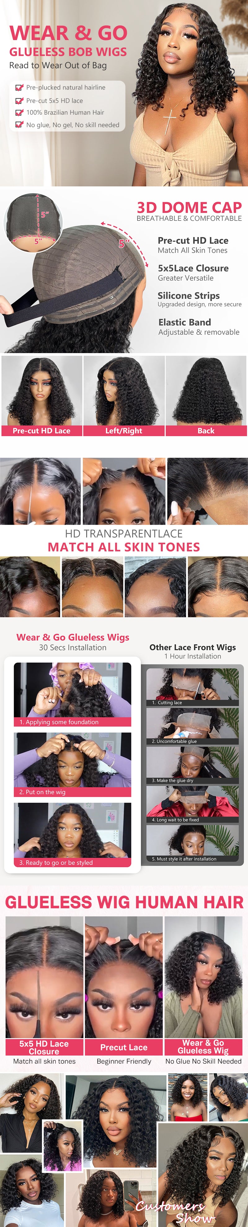 | Taille de dentelle | 5x5 pouces |